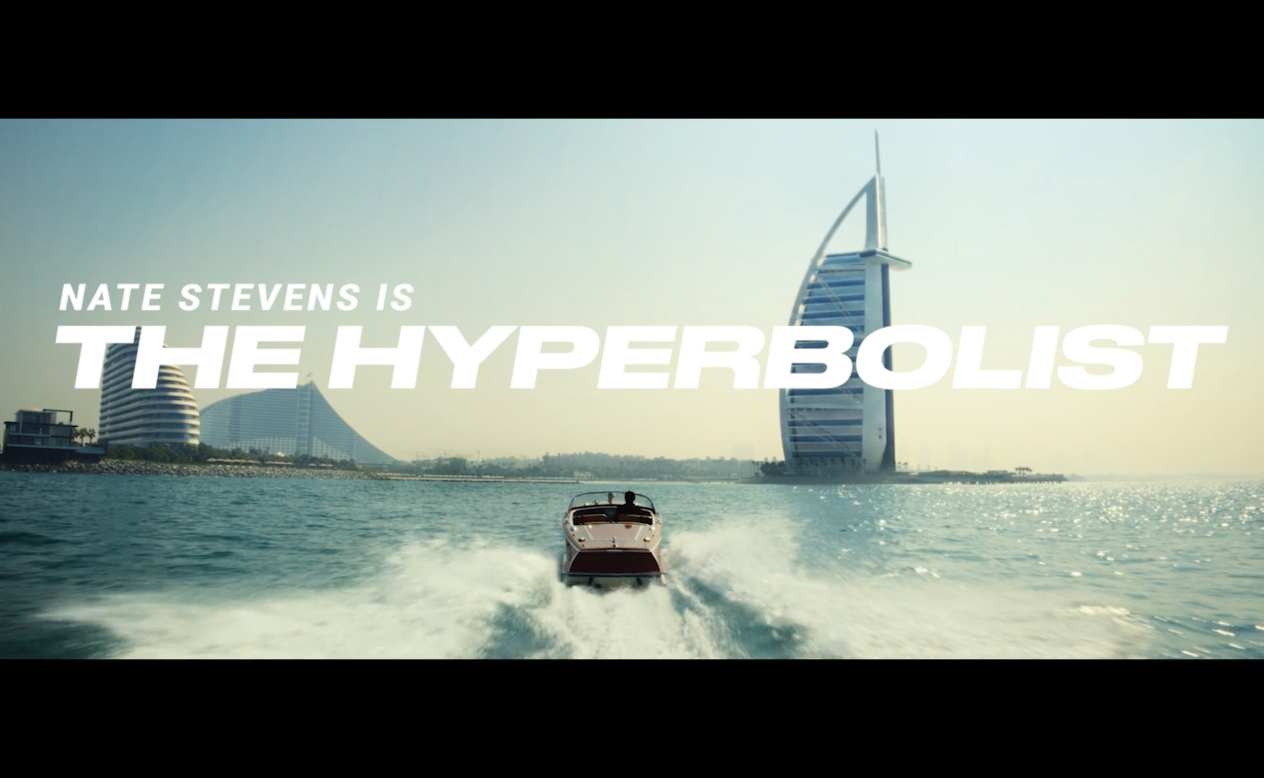 Dubai Tourism challenged us to win over affluent, skeptical American travelers who view the city as all artifice and no soul, so instead of leaning into spectacle, we embraced that skepticism with a sharply funny, self-aware campaign that disarms doubt and reveals Dubai’s more human side alongside its jaw-dropping natural landscapes; the hero film, The Hyperbolist, follows a couple recounting their trip at a dinner party from opposing perspectives—she’s grounded, he’s a notorious exaggerator—and by the end their stories converge to reveal the twist: in a place as extraordinary as Dubai, even the most unbelievable details are true.